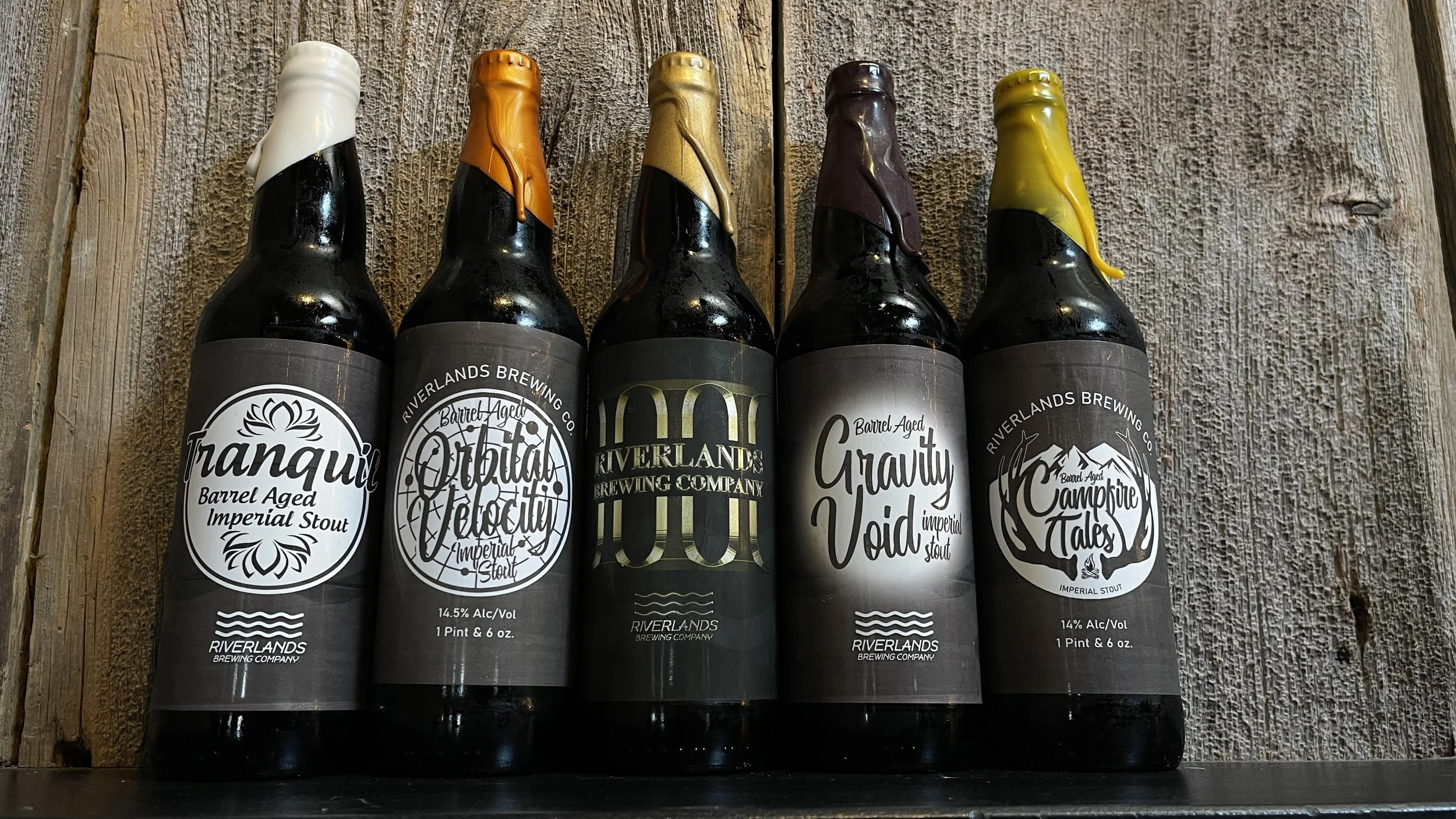 Rummaging through the walk-in cooler, he's found our stash of barrel aged bottles that were held back for QC from various releases in the past.