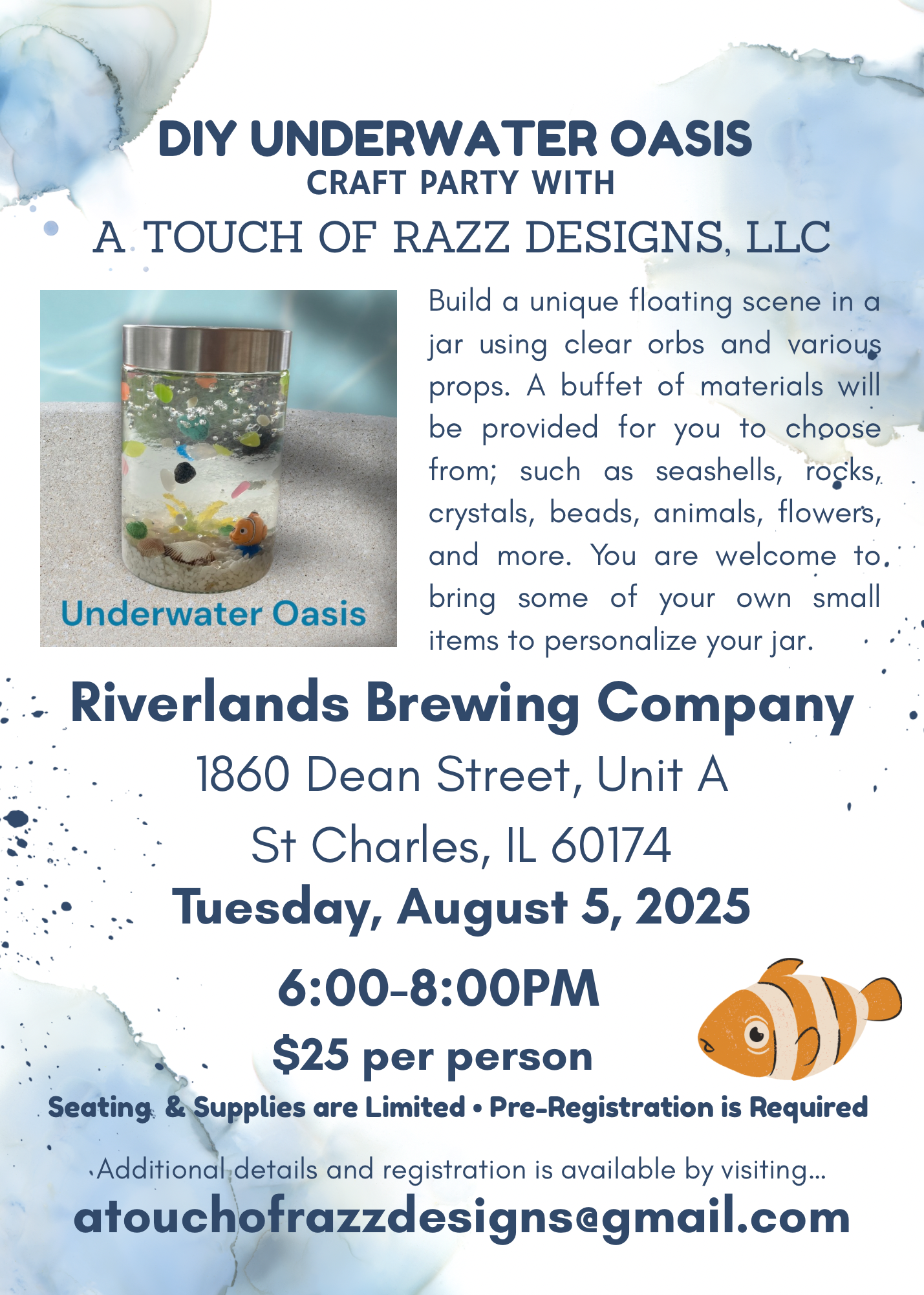 Led by A Touch of Razz Designs, Inc, this ticketed event includes everything you need to make your own unique and individualized Underwater Oasis.
