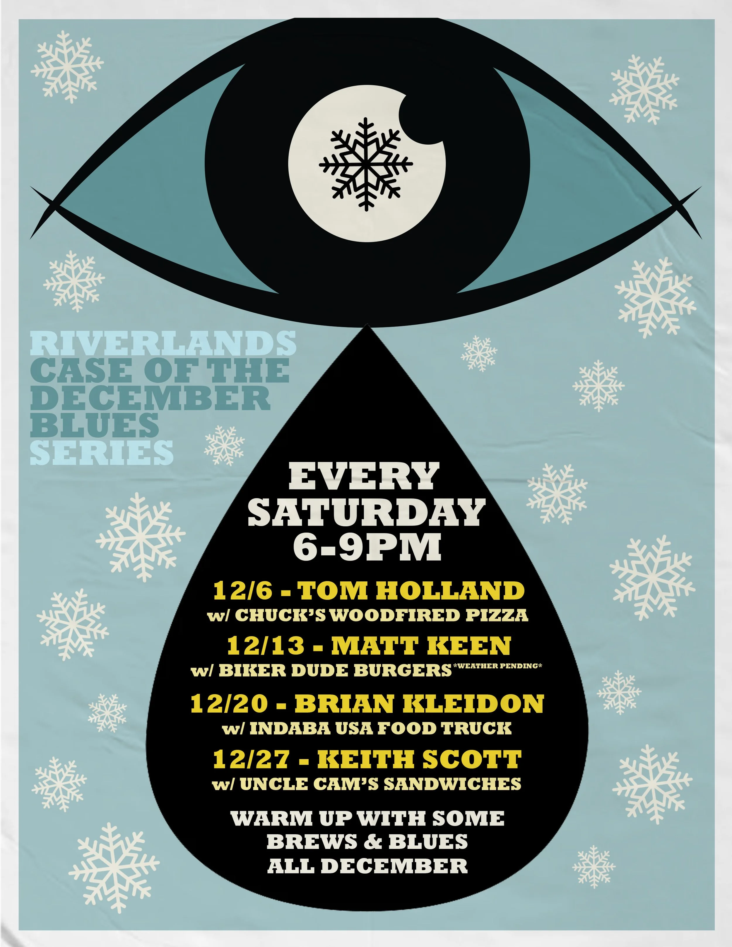 Poster for Riverlands Case of the December Blues Music Series!